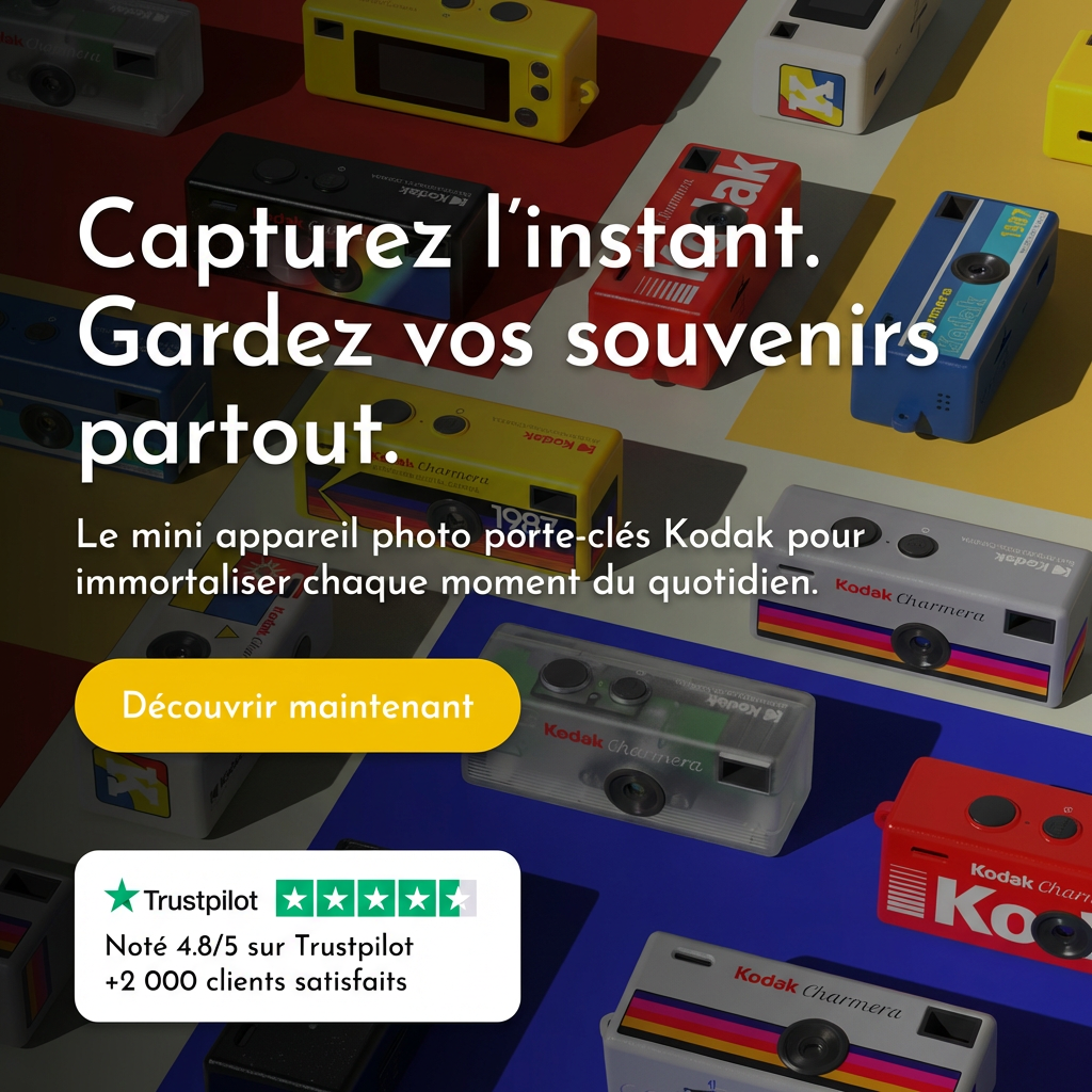 Le mini appareil photo porte-clés Kodak vous suit partout pour immortaliser les moments spontanés — en photo et en vidéo — en un seul clic.